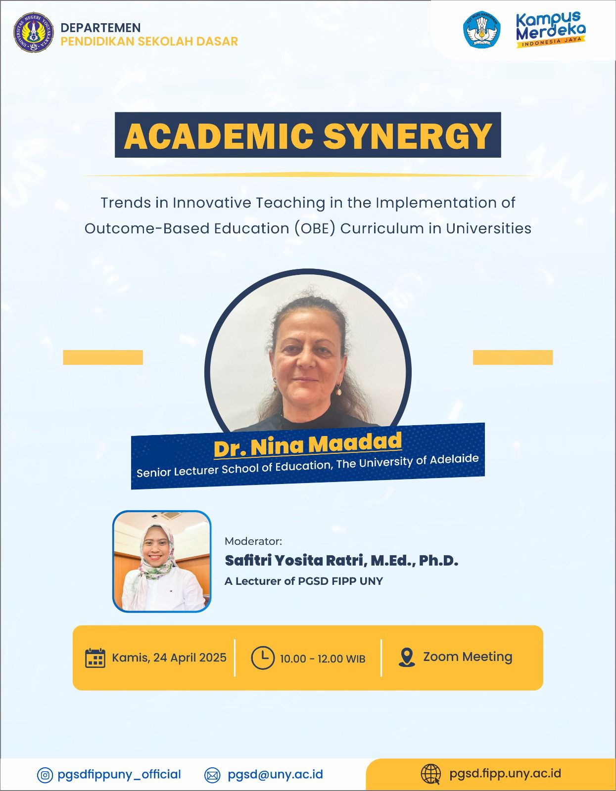 Post date: Thursday, 24 April, 2025 - 18:33The three-day Public Lecture on Education has been held, with the main theme "Innovation and Transformation of Learning in the 21st Century Curriculum". This activity presents expert speakers in the field of education from Indonesia and Australia, and is attended by lecturers, students,...